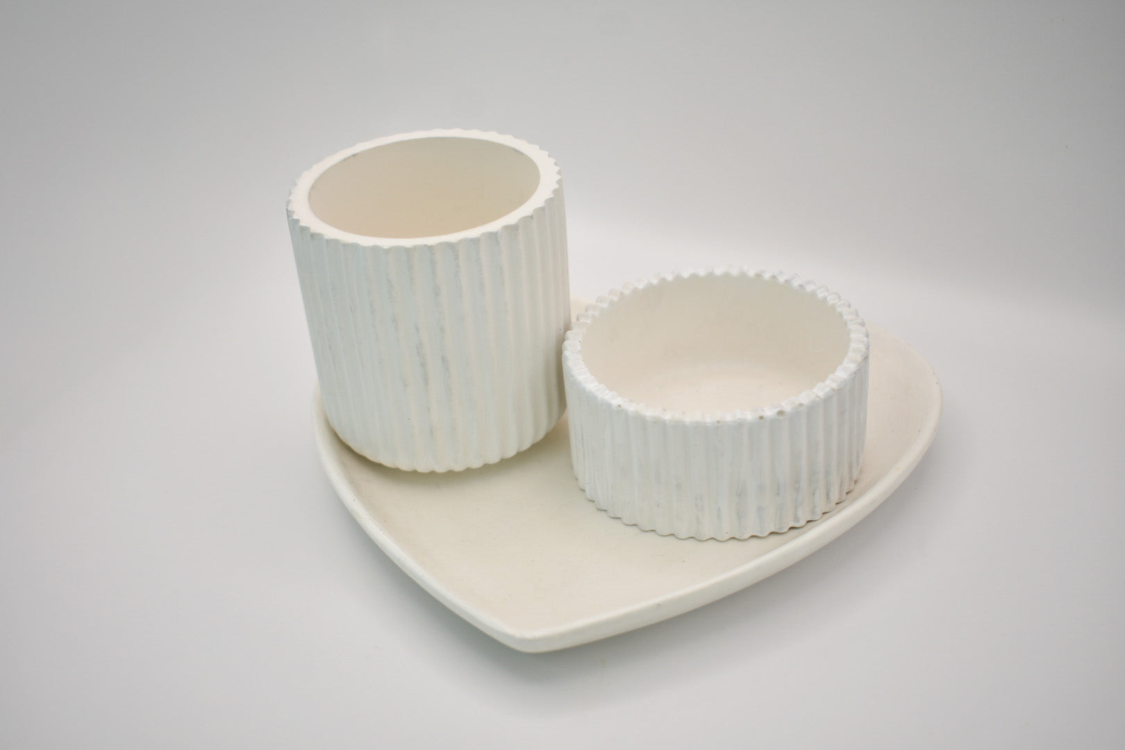 Light up the love with this charming heart-shaped tray set! It comes with a rippled jar candle (with a classic cotton wick for that timeless glow) and a matching rippled jar to keep your matches handy and stylishly tucked away.